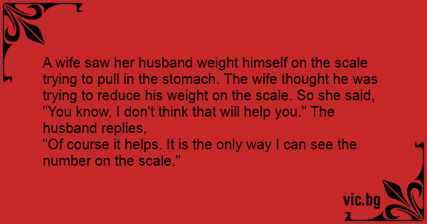 Мъж се качва на кантара да се премери и си гълта корема. Жена мy: