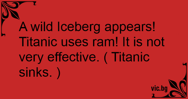 A wild Iceberg appears! Titanic uses ram! It is not very effective. ( Titanic sinks. )