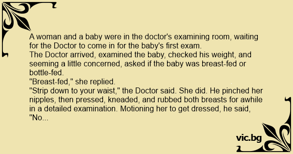 The Doctor arrived, examined the baby, checked his weight, and seeming a little concerned, asked if the baby was вrеаsт-fed or bottle-fed.