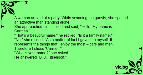 She approached him, smiled and said, "Hello. My name is Carmen."