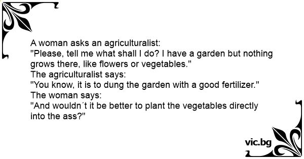 "And wouldn´t it be better to plant the vegetables directly into the аss?"