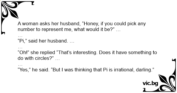 “Yes,” he said. “But I was thinking that Pi is irrational, darling.”