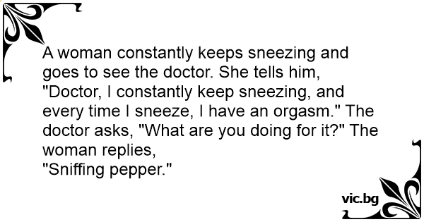 A woman constantly keeps sneezing and goes to see the doctor. She tells him, "Doctor, I constantly keep sneezing, and every time I sneeze, I have an оrgаsм." The doctor asks, "What are you doing for it?" The woman replies,