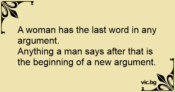 Kvinnan får alltid sista ordet. Vad än mannen säger efter detta innebär att han startar ett nytt gräl.
