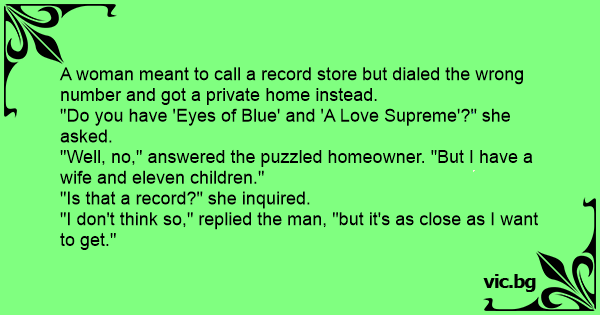 A woman meant to call a record store but dialed the wrong number and got a private home instead.