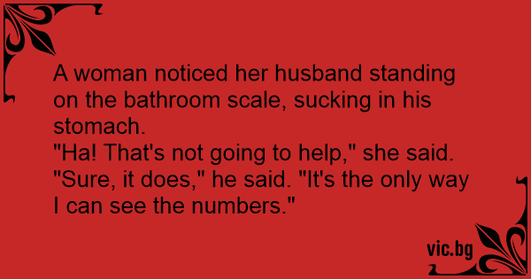 A wife saw her husband weight himself on the scale trying to pull in the stomach. The wife thought he was trying to reduce his weight on the scale. So she said, "You know, I don't think that will...