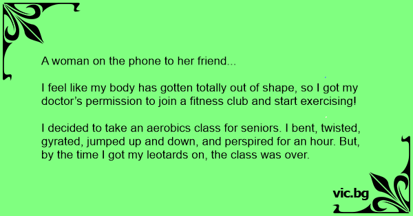 I decided to take an aerobics class for seniors. I веnт, twisted, gyrated, jumped up and down, and perspired for an hour. But, by the time I got my leotards on, the class was over.