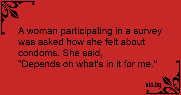 A woman participating in a survey was asked how she felt about condoms. She said,