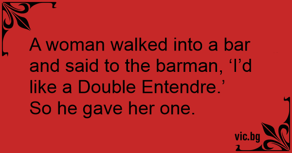 A woman walked into a bar and said to the barman, ‘I’d like a Double Entendre.’