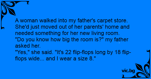 "Yes," she said. "It's 22 flip-flops long by 18 flip-flops wide... and I wear a size 8."