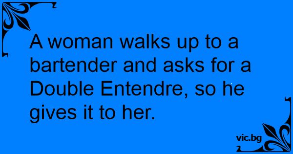 A woman walks up to a bartender and asks for a Double Entendre, so he gives it to her.