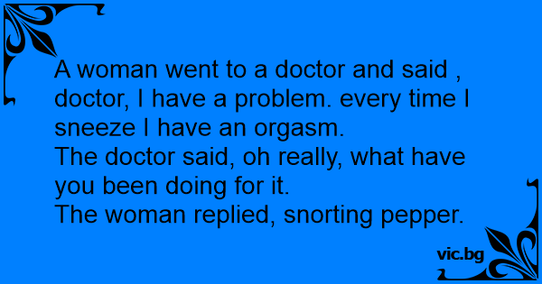 A woman went to a doctor and said , doctor, I have a problem. every time I sneeze I have an оrgаsм.