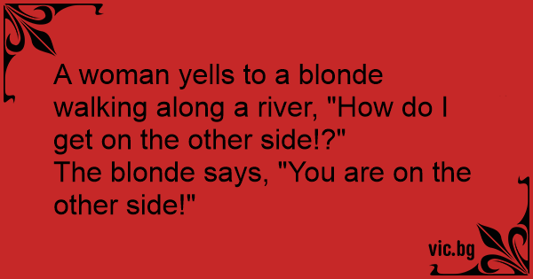A blonde asks a bypasser: Excuse me, would you tell me where the other side of the road is? It's on the other side. Strange.. When I was on the other side, people told me it's here...