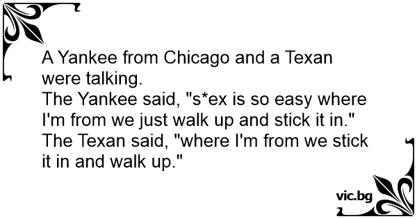The Yankee said, "s*ex is so easy where I'm from we just walk up and stick it in."