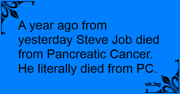 A year ago from yesterday Steve Job died from Pancreatic Cancer. He literally died from PC.
