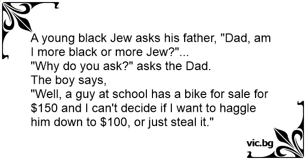 A young black Jew asks his father, "Dad, am I more black or more Jew?"...