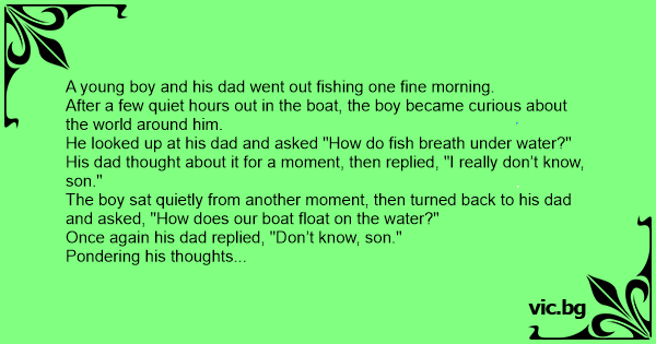 The boy sat quietly from another moment, then turned back to his dad and asked, "How does our boat float on the water?"