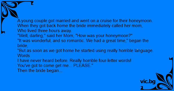 "Well, darling," said her Mom, "How was your honeymoon?"
