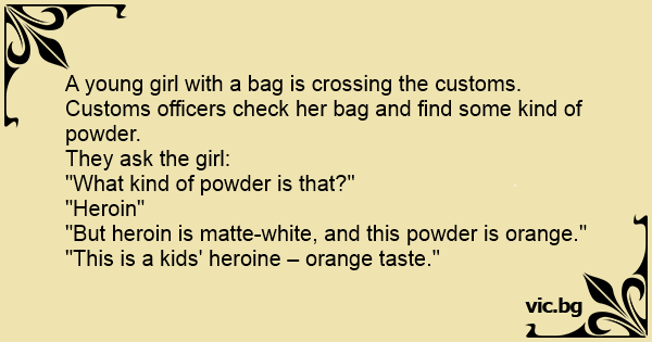 Customs officers check her bag and find some kind of powder.