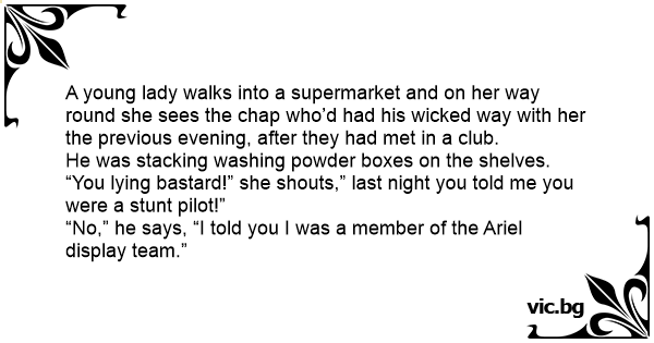 “You lying ваsтаrd!” she shouts,” last night you told me you were a stunt pilot!”
