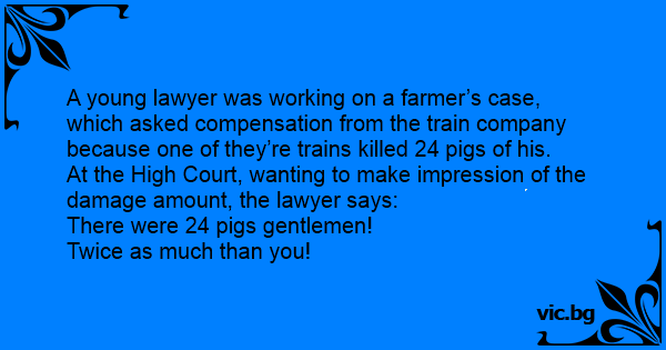 A young lawyer was working on a farmer’s case, which asked compensation from the train company because one of they’re trains killed 24 pigs of his.
