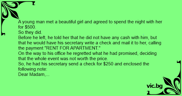 A young man met a beautiful girl and agreed to spend the night with her for $500.