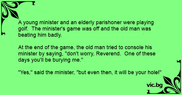 At the end of the game, the old man tried to console his minister by saying, "don't worry, Reverend. One of these days you'll be burying me."