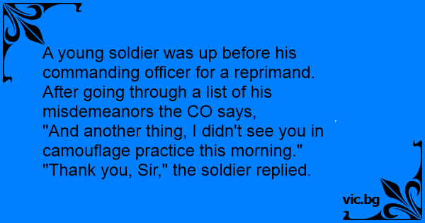 A young soldier was up before his commanding officer for a reprimand.