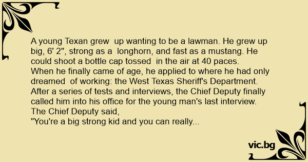 After a series of tests and interviews, the Chief Deputy finally called him into his office for the young man's last interview.