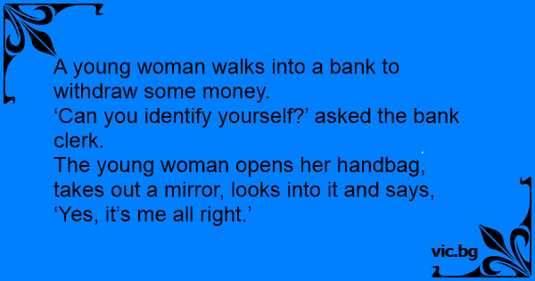 ‘Can you identify yourself?’ asked the bank clerk.