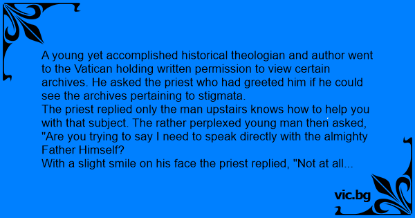 The priest replied only the man upstairs knows how to help you with that subject. The rather perplexed young man then asked,