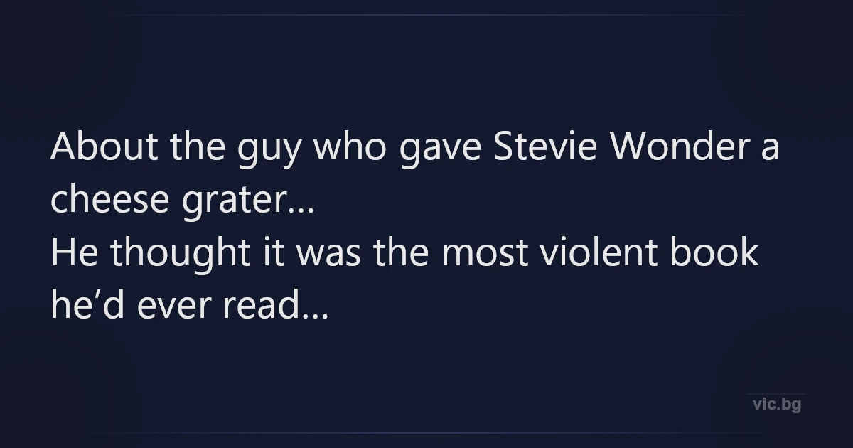 About the guy who gave Stevie Wonder a cheese grater…<br />He thought it was the most violent book he’d ever read…