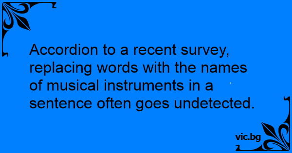 Accordion to a recent survey, replacing words with the names of musical instruments in a sentence often goes undetected.