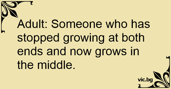 Adult: Someone who has stopped growing at both ends and now grows in the middle.