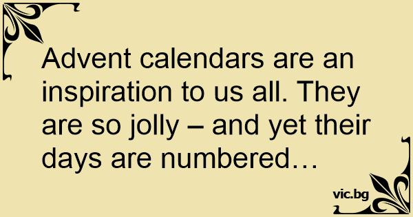 Advent calendars are an inspiration to us all. They are so jolly – and yet their days are numbered…
