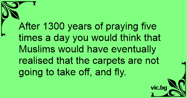 After 1300 years of praying five times a day you would think that Muslims would have eventually realised that the carpets are not going to take off, and fly.