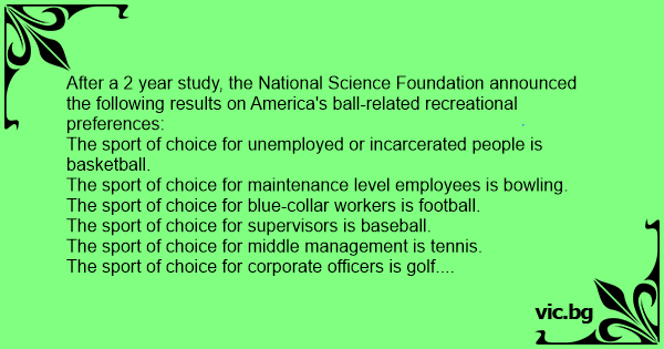 After a 2 year study, the National Science Foundation announced the following results on America's ball-related recreational preferences: