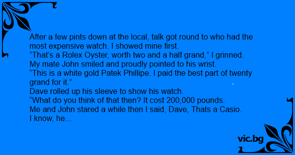 After a few pints down at the local, talk got round to who had the most expensive watch. I showed mine first.