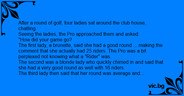The Pro was completely confused not knowing what the term "rider" meant. But, because he didn't want to look dumb, he made a quick polite remark, wished the ladies well and then left.