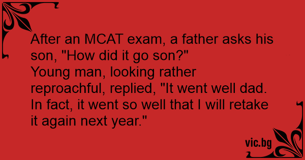 After an MCAT exam, a father asks his son, "How did it go son?"