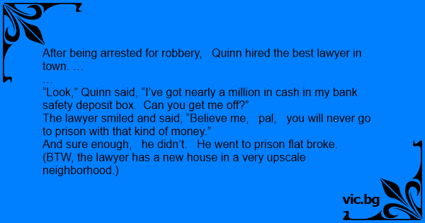 The lawyer smiled and said, “Believe me, pal, you will never go to prison with that kind of money.”