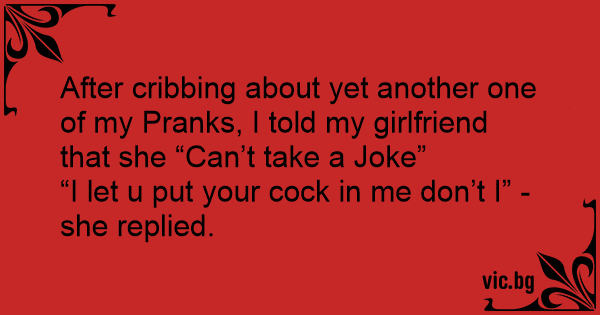 After cribbing about yet another one of my Pranks, I told my girlfriend that she “Can’t take a Joke”