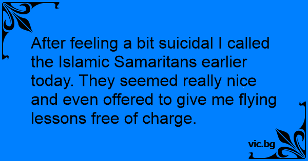 After feeling a bit suicidal I called the Islamic Samaritans earlier today. They seemed really nice and even offered to give me flying lessons free of charge.