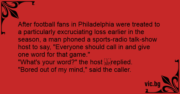 After football fans in Philadelphia were treated to a particularly excruciating loss earlier in the season, a man phoned a sports-radio talk-show host to say, "Everyone should call in and give one word for that game."