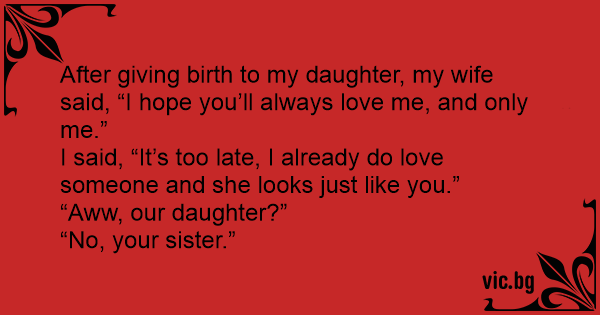 After giving birth to my daughter, my wife said, “I hope you’ll always love me, and only me.”