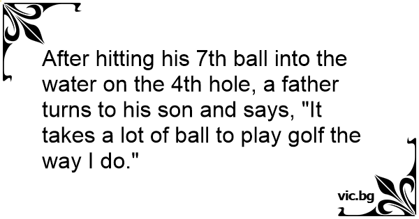 After hitting his 7th ball into the water on the 4th hole, a father turns to his son and says, "It takes a lot of ball to play golf the way I do."