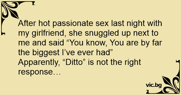 After hot passionate sеx last night with my girlfriend, she snuggled up next to me and said “You know, You are by far the biggest I’ve ever had”