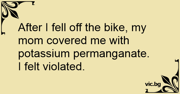 After I fell off the bike, my mom covered me with potassium permanganate.
