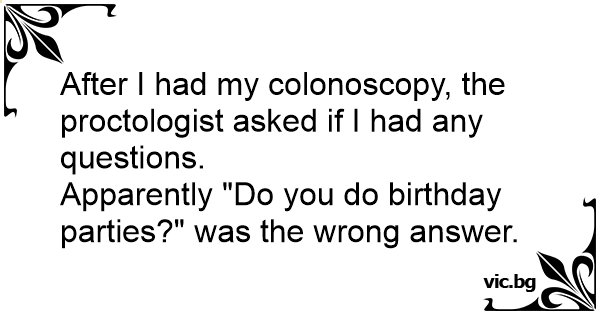 After I had my colonoscopy, the proctologist asked if I had any questions.