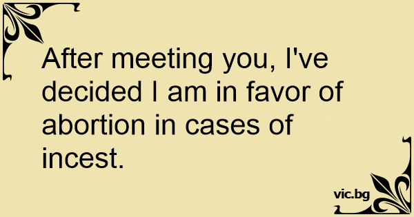 After meeting you, I've decided I am in favor of abortion in cases of inсеsт.